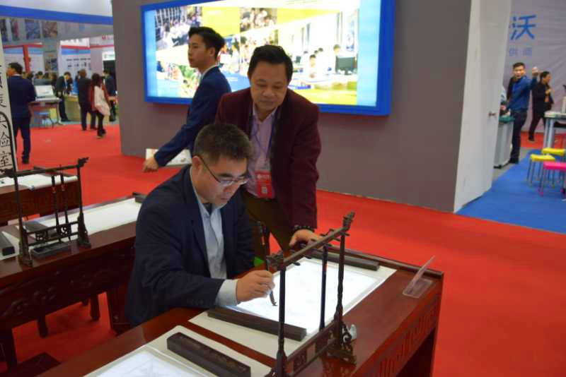 參會(huì)嘉賓體驗(yàn)智慧書(shū)法教室